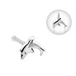 NRB , Stamped 14KT Solid White Gold nose bone featuring a solid white gold dolphin. This is a unique and gorgeous nose stud! ...