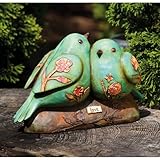 Outdoor Décor , Who can resist these sweet little love birds? They nestle together upon their tree branch, sitting over a simple declaration of "love." The stamped and embossed floral pattern that is woven upon their sides brings a handmade artfulness to this statuary, creating a lovely, peaceful garden statement. ...