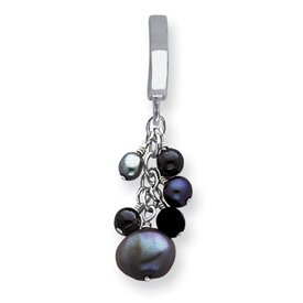 JewelryWeb , Sterling Silver Gray Cultured Pearls Onyx Dangle TummyToy Belly Ring - in Sterling Silver - JewelryWeb Style: QTR39613SS - FREE gift-ready jewelry box